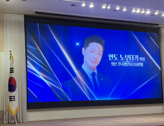 総会開始は、全員起立、大韓民国「愛国歌」斉唱から始まる。第一部の会長挨拶・来賓紹介・会員表彰は、司会進行とわかりやすい音楽付きスライドに従い、迅速かつ淡々と進む。報告・決議時には、会長が壇上左手奥に無言のまま着座。その場での質問等はない。日本では、総会当日に思わぬ質問と要望がたくさん出る。それに対して、会長と総務部長が即答する。そうしたシーンはない。第二部の懇親会は、豪華な晩餐が用意され、全員参加イベント型のくじ引き大会などもあり、大いに盛り上がった。