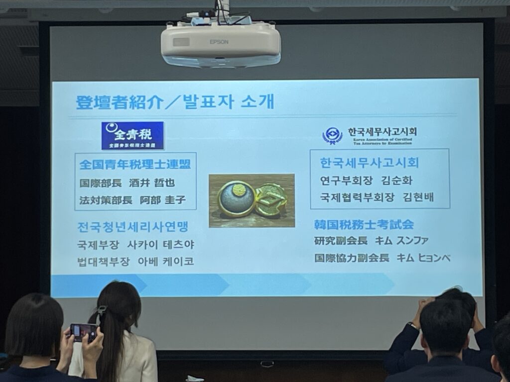 理事会後の勉強会では、韓国からも多数の税務士の皆さまにご参加いただき、「租税特別措置法・租税特例制限法」をテーマに両国が発表を行い、活発な意見交換が行われました。その後の懇親会には日韓約80名が参加し、交流の輪が広がりました。私は「アンニョンハセヨ」と「カムサハムニダ」だけで臨みましたが、大和屋さんの翻訳アプリの助けや、韓国の税務士の皆さまの気さくなお人柄に支えられ、楽しく交流することができました。税務における違いや共通点、さらには実情や裏話まで伺うことができ、学びの多い一日となりました。